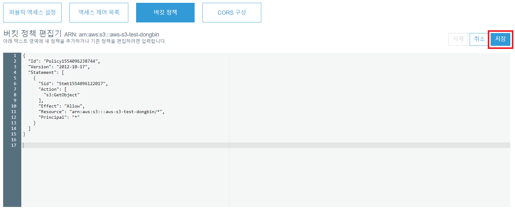 버킷 정책 수정하기