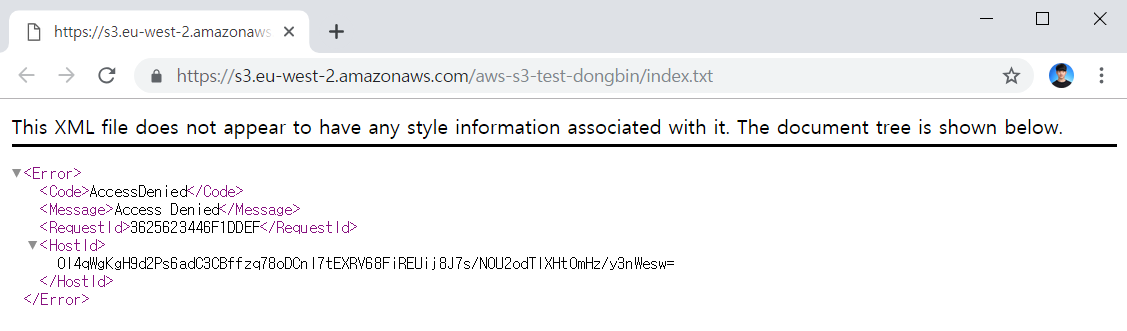 하지만 실제로 해당 경로에 접속을 해보면 접근 불가(Access Denied)라고 출력되는 것을 알 수 있습니다.