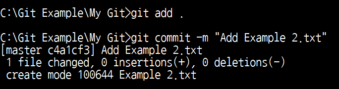하나의 텍스트 파일을 추가한 뒤에 커밋(Commit)합니다.