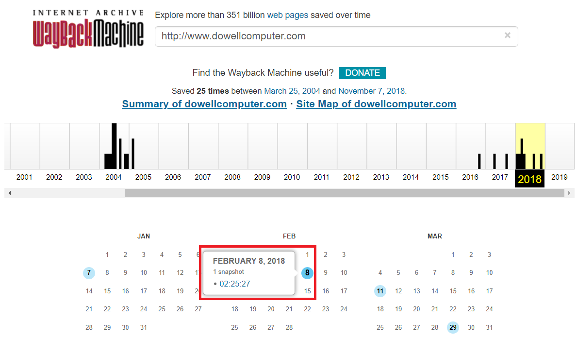 저는 한 번 달력을 눌러 2018년 2월 8일자의 아카이브를 확인해보도록 하겠습니다.