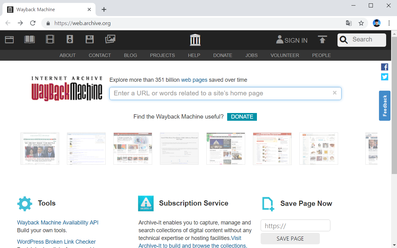 ▶ 웹 아카이브(Web Archive): https://web.archive.org/