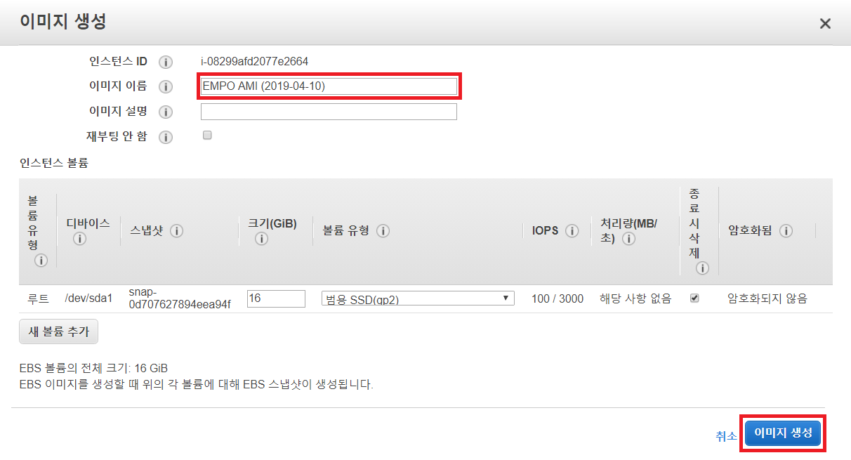 실제로 AWS EC2 서버 중 하나를 선택하여 이미지로 만들어 보도록 하겠습니다.