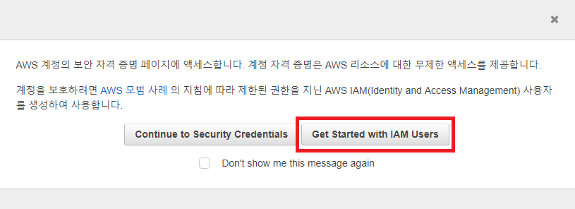 자격 증명을 생성하실 때에는 IAM Users를 이용하여 [사용자 추가]를 진행하시면 됩니다.