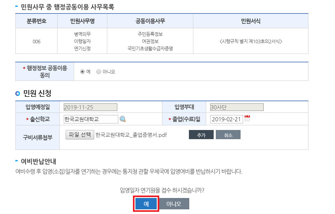 병무청 입영일자 연기 방법 (인터넷 신청)