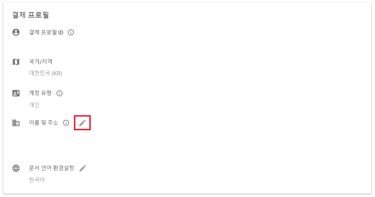 이후에 다음과 같이 [이름 및 주소] 부분을 변경해주시면 됩니다.
