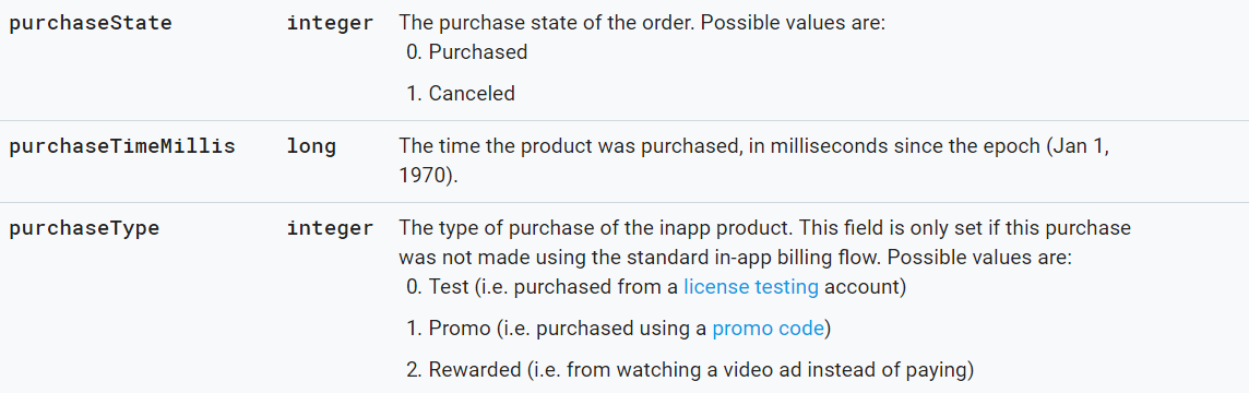 ▶ 구글 결제 관련 개발자 API 명세서: https://developers.google.com/android-publisher/api-ref/purchases/products