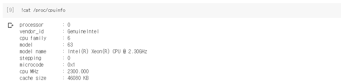 CPU 정보는 다음과 같이 확인할 수 있습니다.