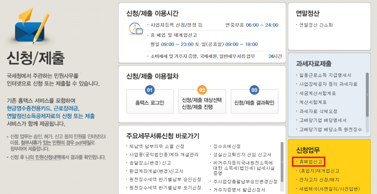 인터넷으로 사업자 폐지 하는 방법 (홈택스 이용)