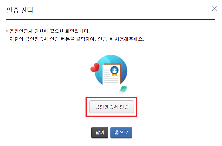 폐업 신고를 위해서는 먼저 [공인인증서 인증]을 해야 합니다.