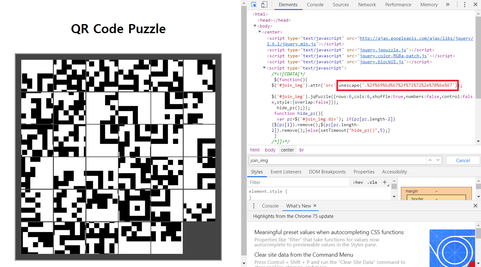 QR CODE PUZZLE 문제는 말 그대로 QR 코드를 찾아내는 문제입니다. 문제 유형은 웹 해킹입니다.