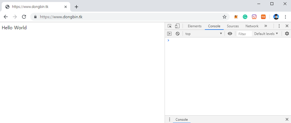 이제 /home/web 디렉토리에 index.html라는 파일을 만들어서 Hello World라고 작성해보았습니다. 그리고 nginx를 재시작해주시면 됩니다.