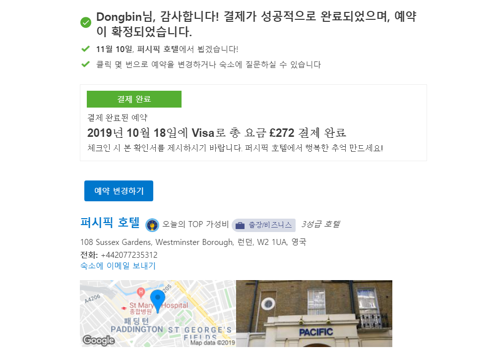 이후에 메일을 확인하면 다음과 같은 예약 확정 메일이 온 것을 확인할 수 있습니다.