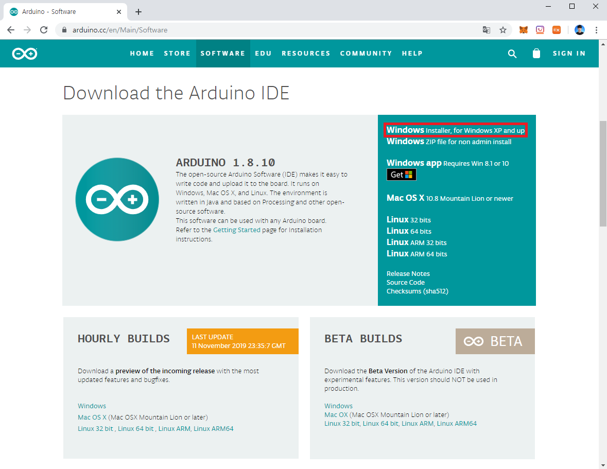 아두이노 공식 페이지로 이동하시게 되면, Software 다운로드 페이지에서 바로 설치할 수 있습니다.