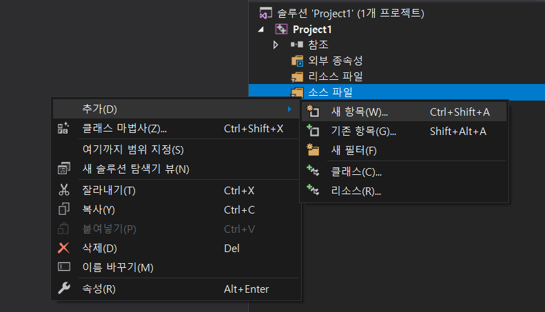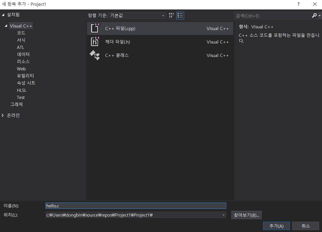 하나의 소스 파일을 추가해보겠습니다.