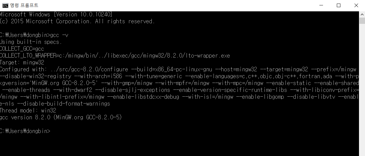 이후에 gcc -v 명령어를 입력하면 다음과 같이 GCC가 성공적으로 설치된 것을 확인할 수 있다.