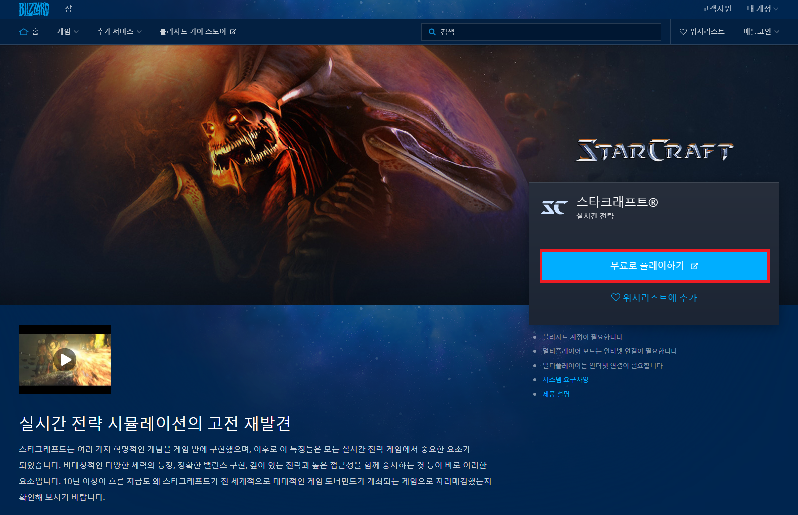 ▶ 블리자드 스타크래프트 공식 웹 사이트: https://kr.shop.battle.net/ko-kr/product/starcraft