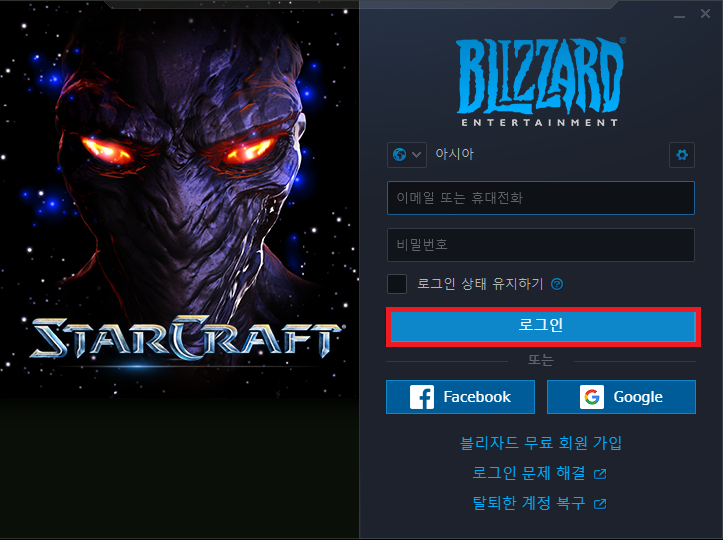 기본적으로 블리자드 계정을 통해서 로그인을 해야만 게임에 접속하실 수 있습니다. 따라서 블리자드 계정이 없으시다면 회원가입을 먼저 하시고, 로그인을 진행해주세요.