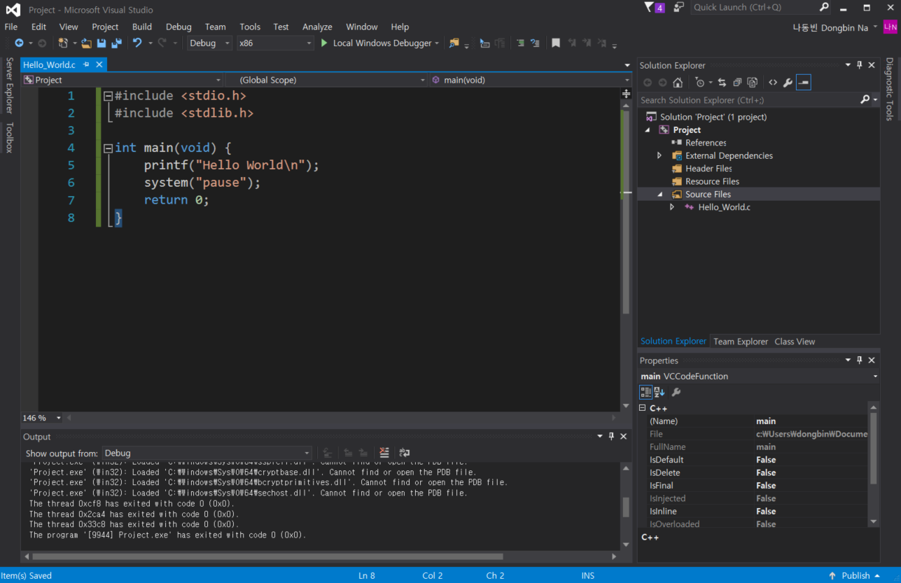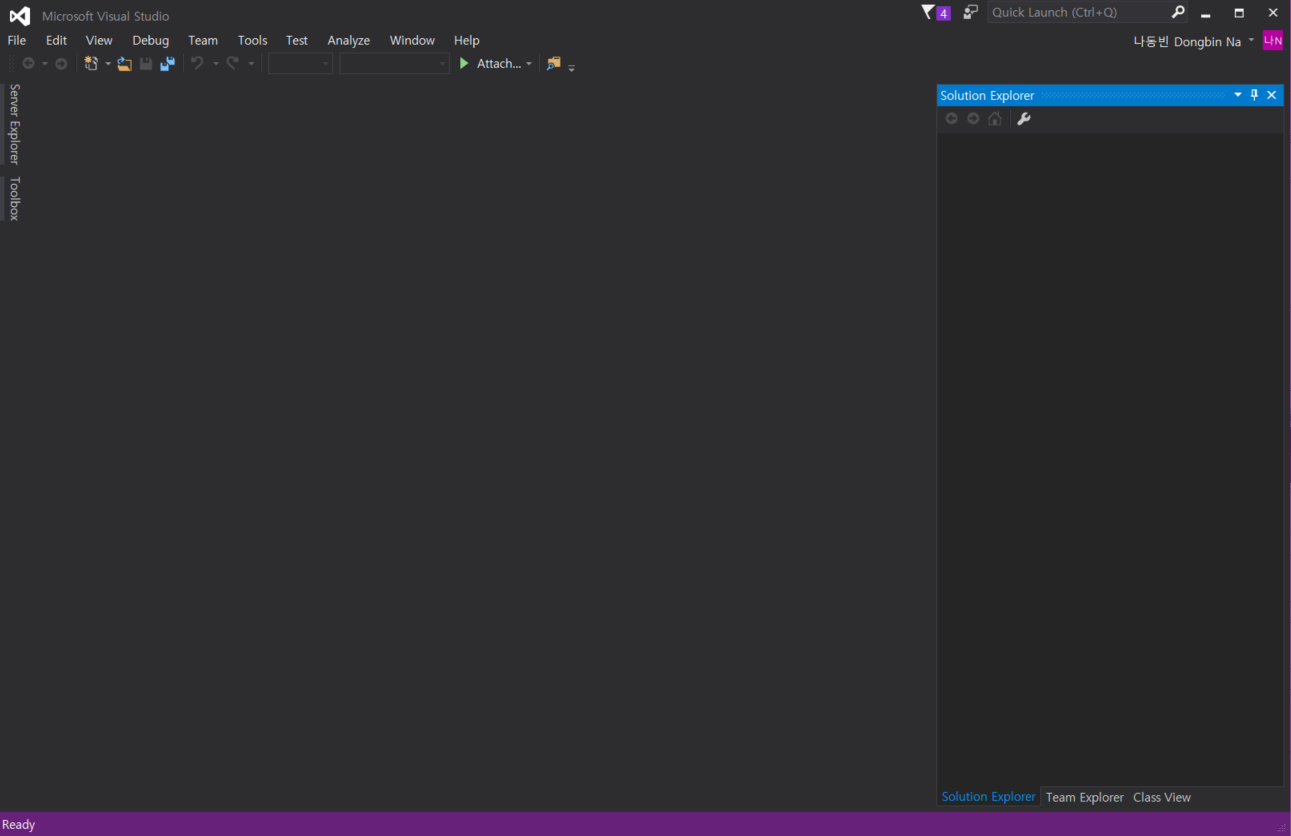결과적으로 다음과 같이 Visual Studio가 실행되는 것을 알 수 있다.