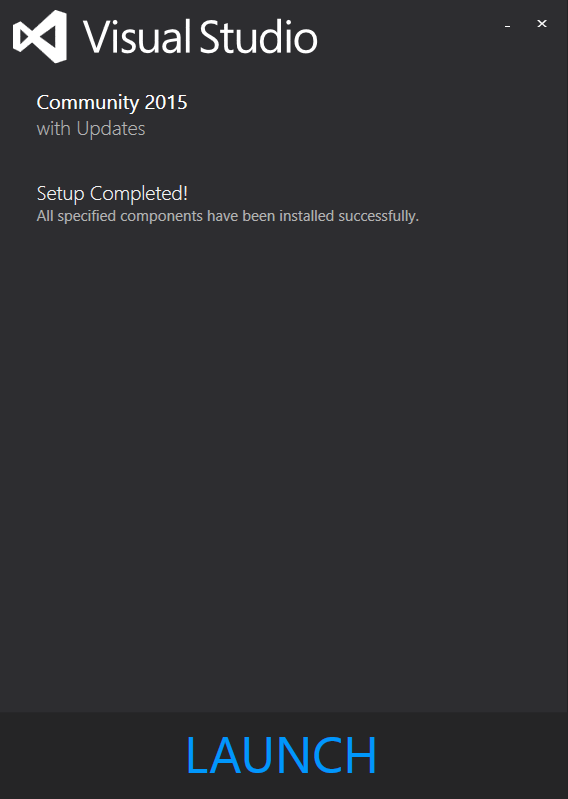 설치가 완료되면 [LAUNCH] 버튼을 눌러서 Visual Studio를 실행할 수 있다.