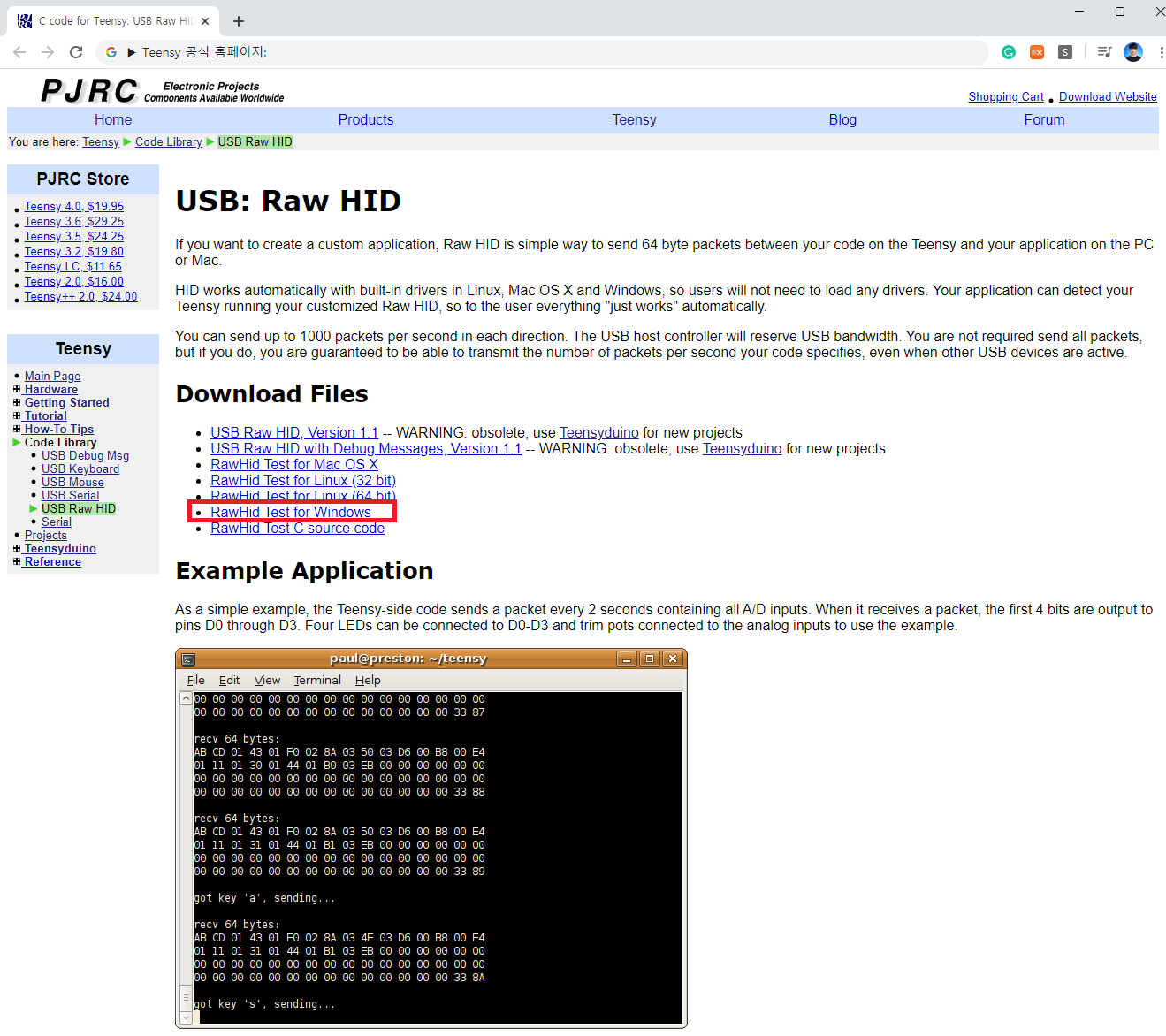 ▶ Teensy 공식 홈페이지: https://www.pjrc.com/teensy/rawhid.html