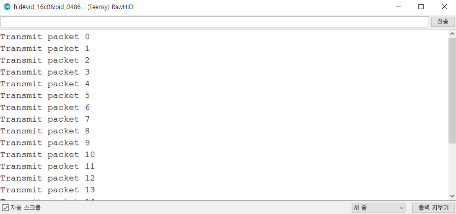 또한 Host PC 쪽에서도 입력을 수행하면 그 데이터가 Teensy Device 쪽으로도 전송되는 것을 확인할 수 있습니다. 이처럼 Host PC와 데이터를 주고 받으면서, 원하는 데이터가 왔을 때 특정한 작업을 수행하는 등의 처리가 가능합니다.