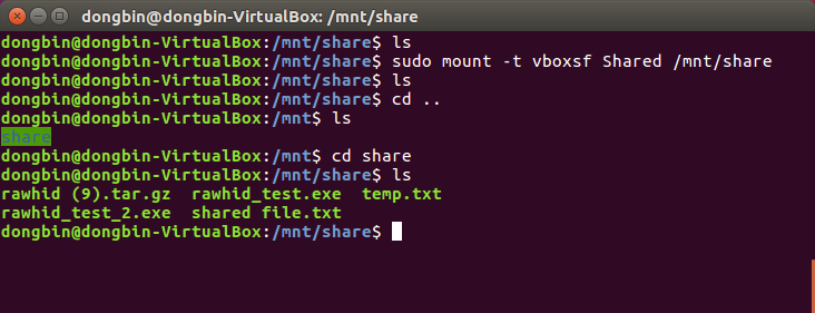 ▶ sudo mount -t vboxsf (공유 폴더 이름) /mnt/share: 마운트 진행하기