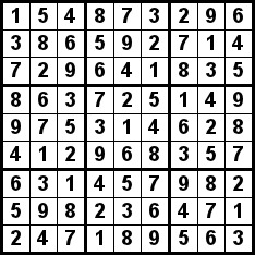 이 문제는 전형적인 스도쿠 퍼즐이 무엇인지 알아야 한다. 다음과 같이 이미 완성된 스도쿠 보드가 있다고 해보자.