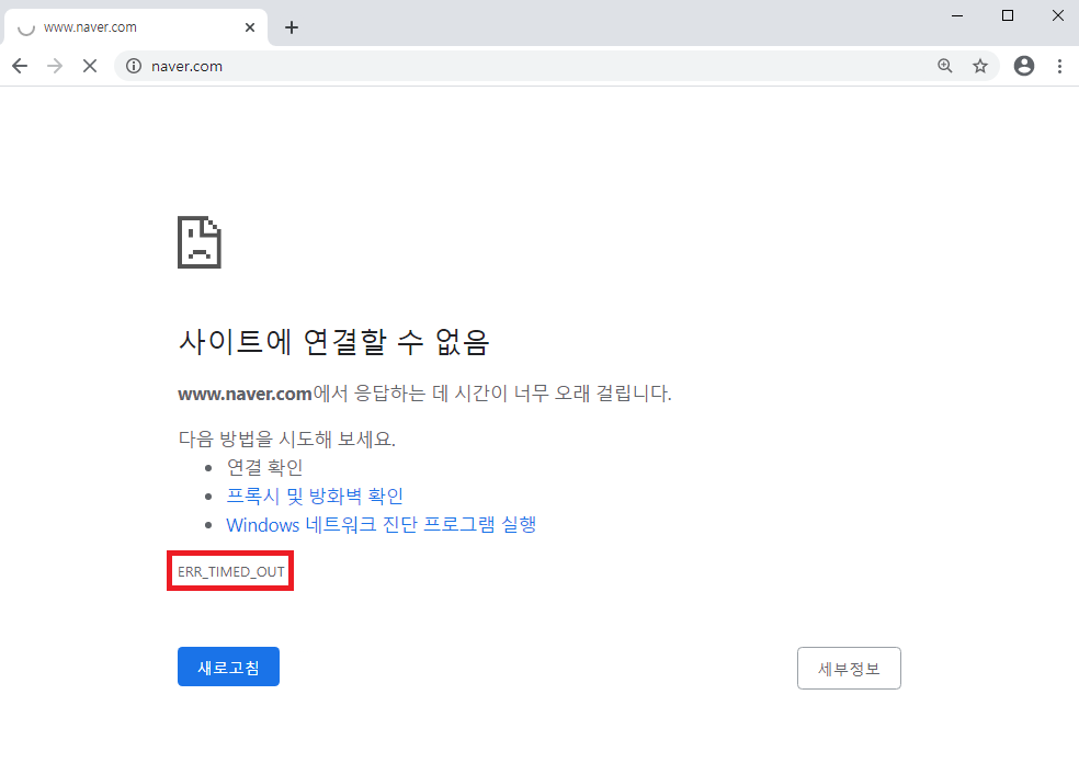 ※ 윈도우 업데이트 이후에 ERR_TIMED_OUT 오류 ※