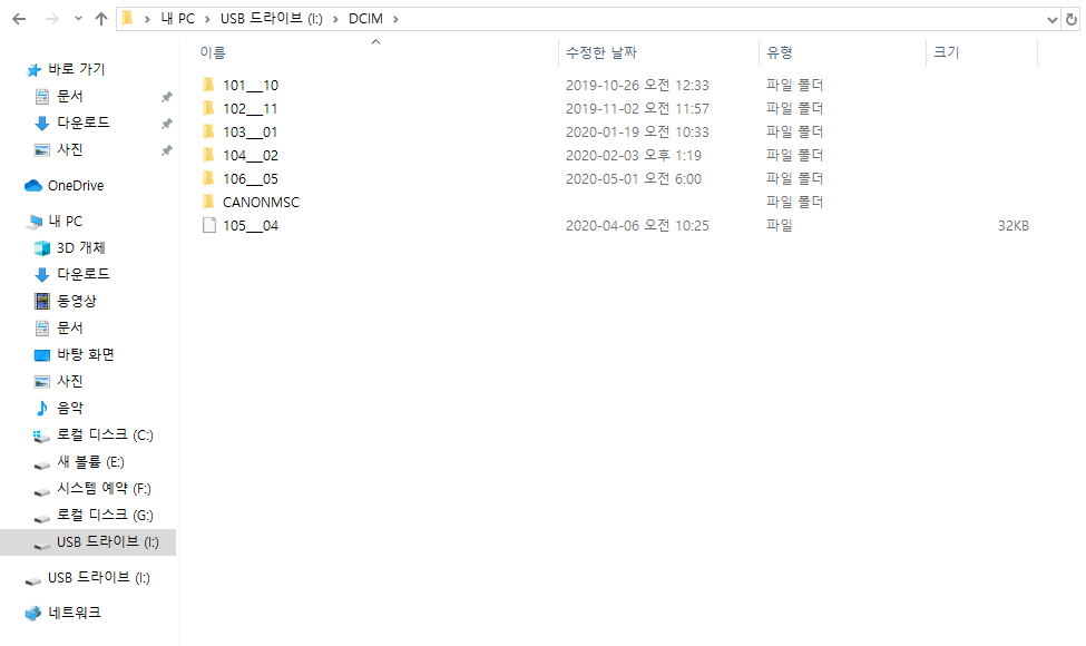 근데 정작 DCIM 폴더로 들어가 보니까, 기존에 존재하던 105__04 폴더 자체가 사라졌다. 무언가 잘못된 것 같다는 직감이 들었다. 하지만 침착하게 해결 방법을 찾아 보았다.
