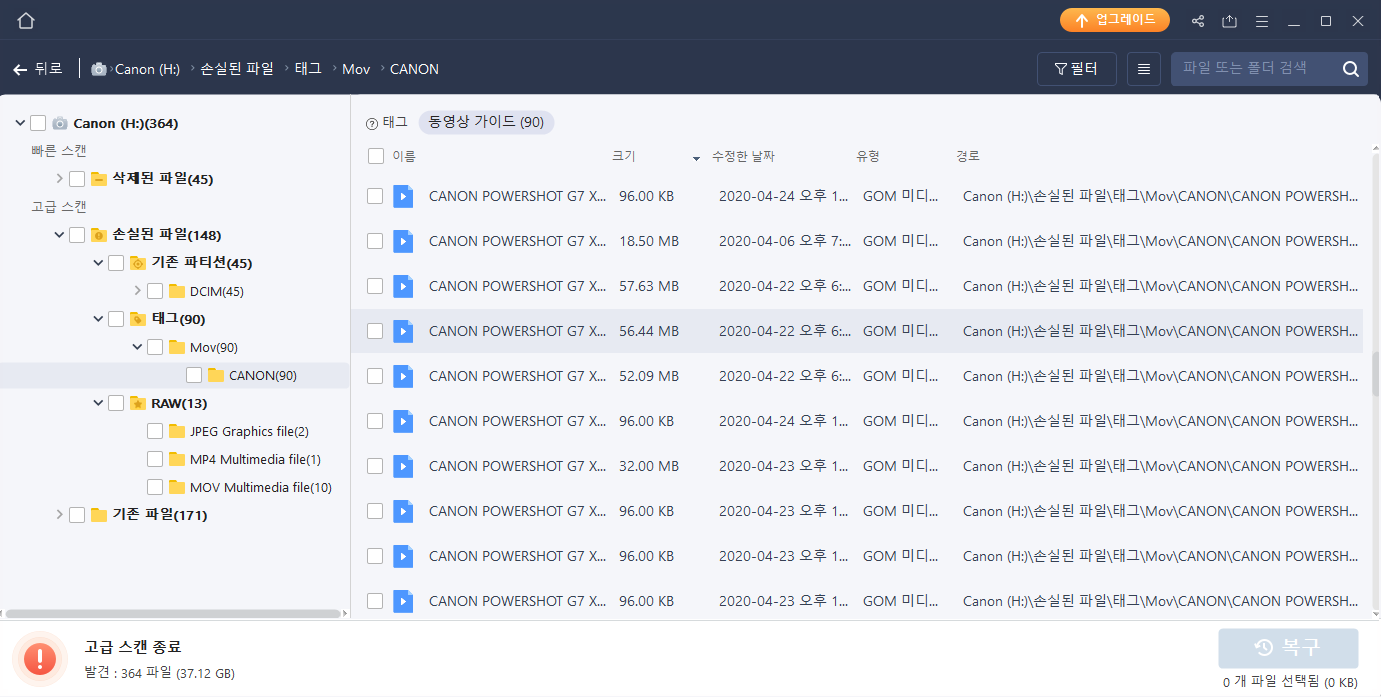 다만 엄청나게도 [손실된 파일] 영역으로, 내가 잃어버린 파일들이 모두 찾아지는 것을 확인할 수 있었다. 심지어 복구를 해보았더니, 영상이 잘 살아나는 것을 확인하였다. 역시 유료 프로그램이라서 더 성능이 좋은 것일까?