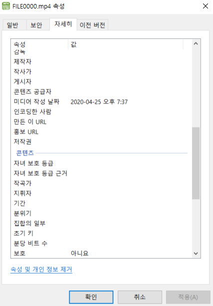 또한 동영상 파일의 메타 정보도 남아 있어서, '미디어 작성 날짜'도 확인할 수 있다.