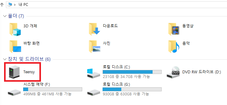 이제 이 Teensy Board를 PC에 꽂으면 다음과 같이 MTP 디바이스로 인식하게 된다.