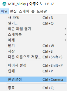이제 이 두 라이브러리 폴더를 아두이노 스케치북 위치에 저장해주면 된다. 여기에서 스케치(Sketch)란, 아두이노 IDE를 이용해 작성된 프로그램을 의미한다. 사용자 라이브러리 경로(스케치북 경로)는 어디일까? 바로 아두이노에서 [파일] - [환경설정]에 들어가면 된다.