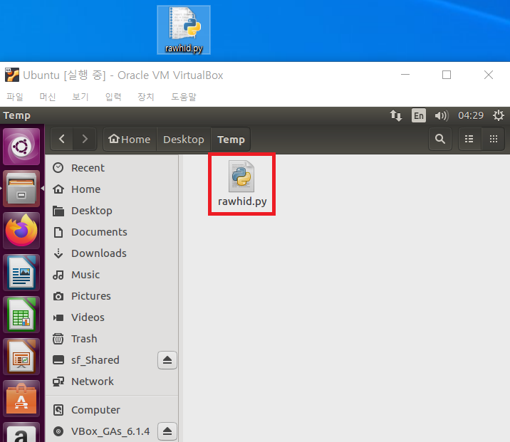 이제 호스트(Host) OS와 게스트(Guest) OS 사이에서 파일을 끌어다 놓는 방식으로 간단히 파일을 옮길 수 있습니다.