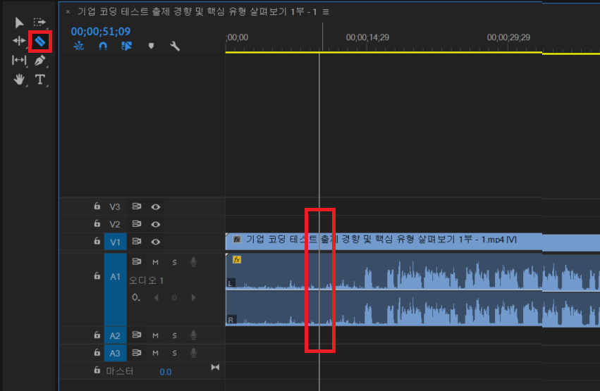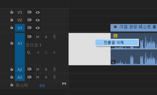 자른 뒤에는 선택 도구(V)로 잘라낸 동영상을 선택해서 제거하시면 됩니다.