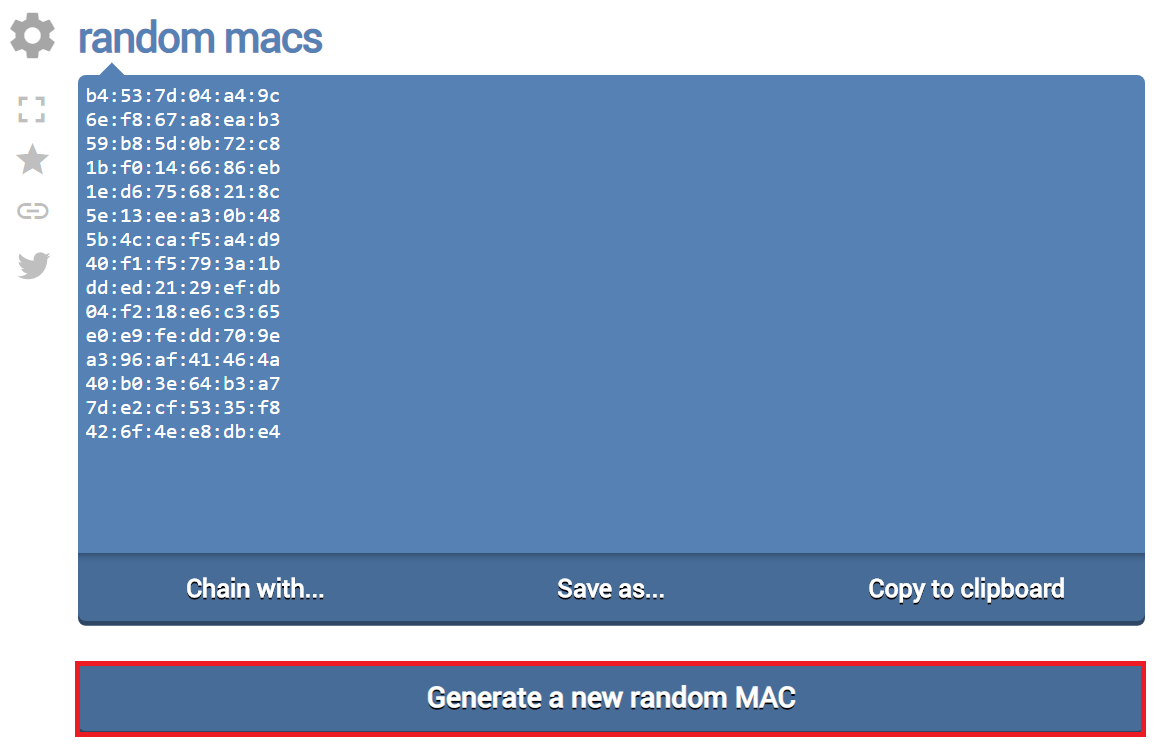 ▶ 랜덤 MAC 주소 생성기: https://onlinerandomtools.com/generate-random-mac