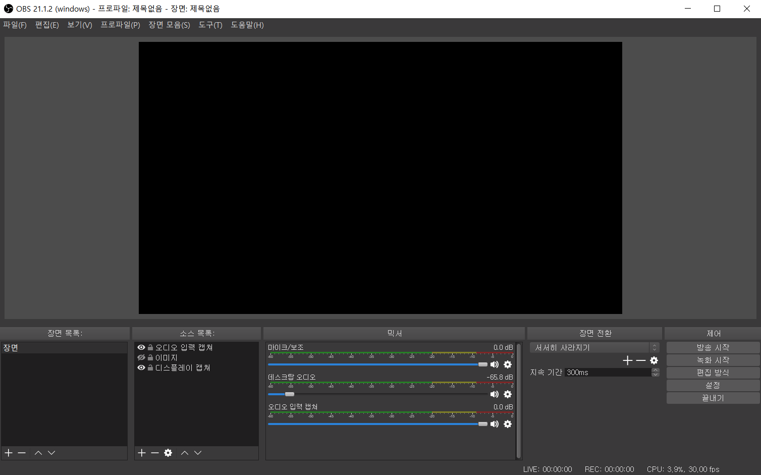 이제 다시 OBS를 실행하면 검은 화면이 아니라 정상적으로 디스플레이가 출력됩니다.