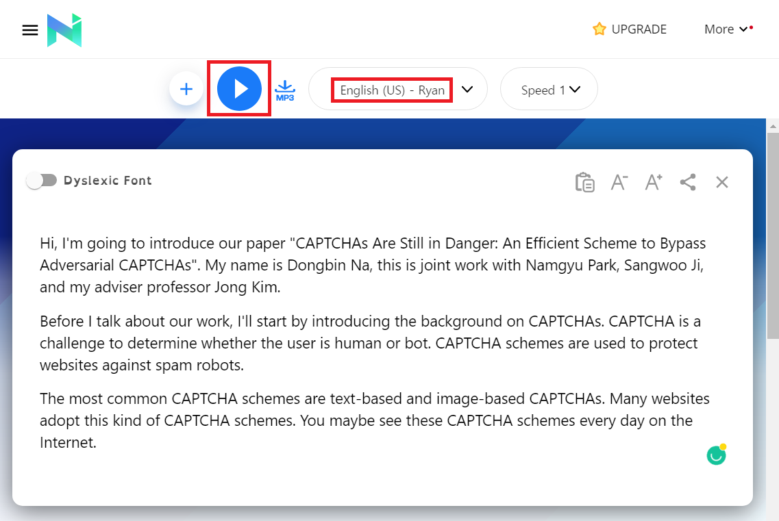 개인적으로 영어 발표를 해야 할 때는 혹시나 내가 잘못 알고 있는 발음이 있는지 확인해보는 것이 좋습니다. 이럴 때는 TTS 서비스를 사용해볼 수 있습니다. TTS는 말 그대로 영어 문장(Text)이 입력으로 들어왔을 때 이를 말(Speech)로 바꾸어주는 기능을 제공합니다. 제가 개인적으로 사용하는 TTS 서비스로는 다음과 같은 것들이 있습니다.