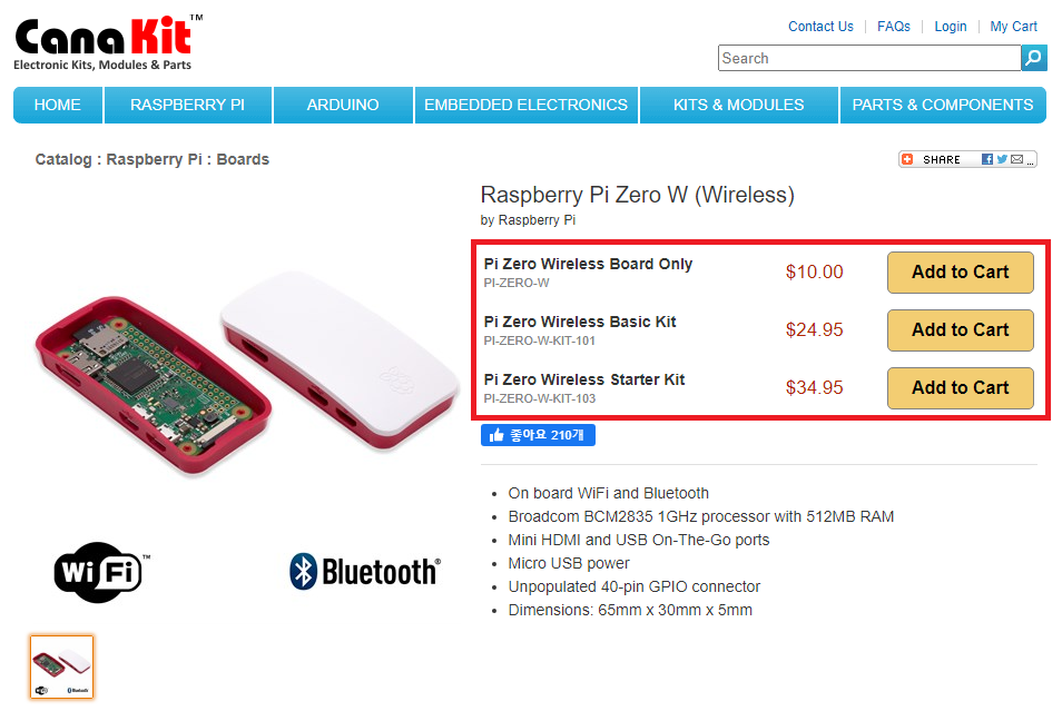 ▶ CanaKit 라즈베리파이 구매 경로: www.canakit.com/raspberry-pi-zero-wireless.html
