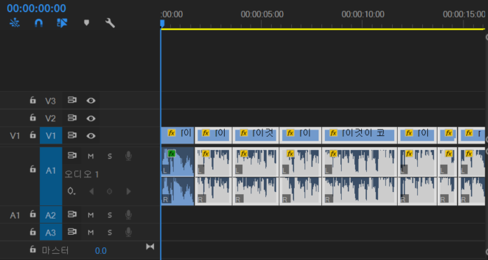 그러면 다음과 같이 선택되었던 모든 시퀀스에 대하여 효과가 제거된다.