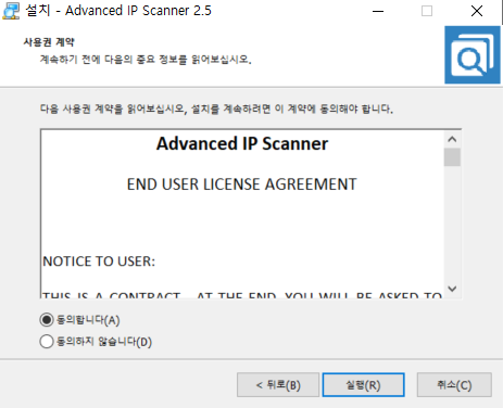 이후에 약관에 동의하고 실행하시면 됩니다.