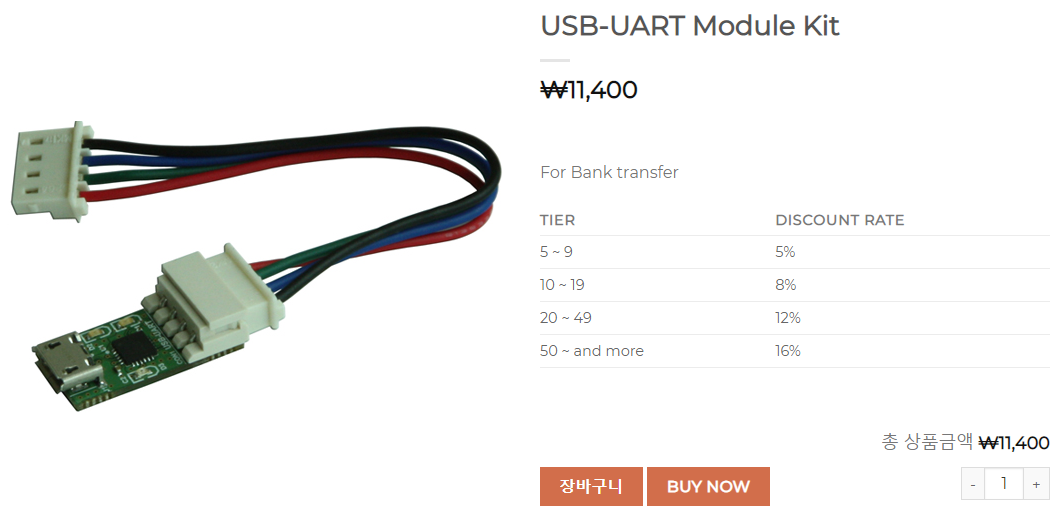 USB-UART는 다음과 같이 생긴 부품이다. 생각보다 가격이 비싸서 놀랐다.