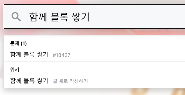 저는 다음과 같이 제가 출제했던 [함께 블록 쌓기] 문제를 검색해 보았습니다.