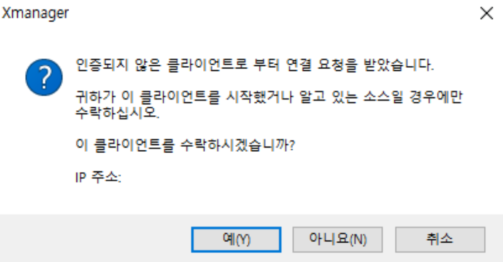 Xmanager "인증되지 않은 클라이언트로부터 연결 요청을 받았습니다." 해결 방법