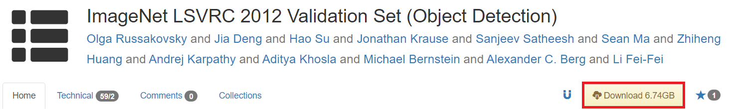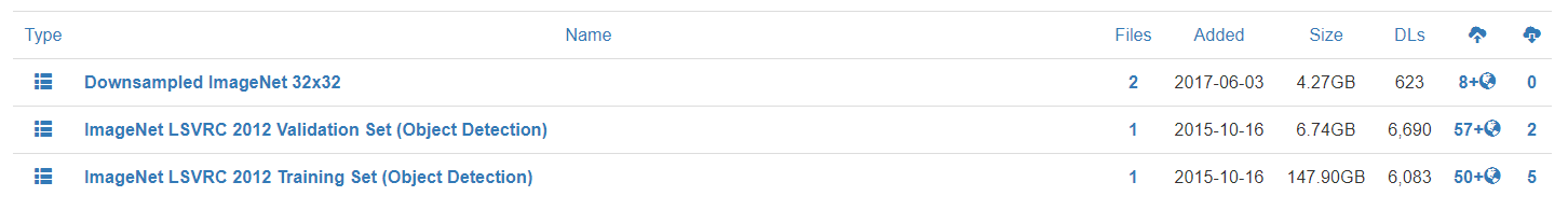 ILSVRC 2012를 다운로드하는 방법은 다양하다. 대표적으로 토렌트(torrent)를 이용해서 받을 수 있다. 다음과 같이 학습 데이터셋과 검증(validation) 데이터셋을 다운로드할 수 있고, 이를 이용해 실험을 진행할 수 있다.