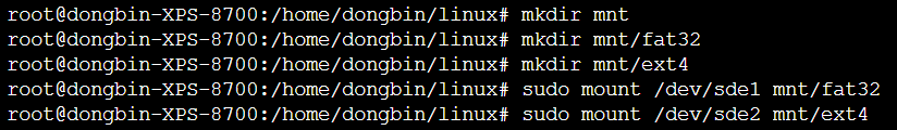 sudo mount /dev/sde1 mnt/fat32