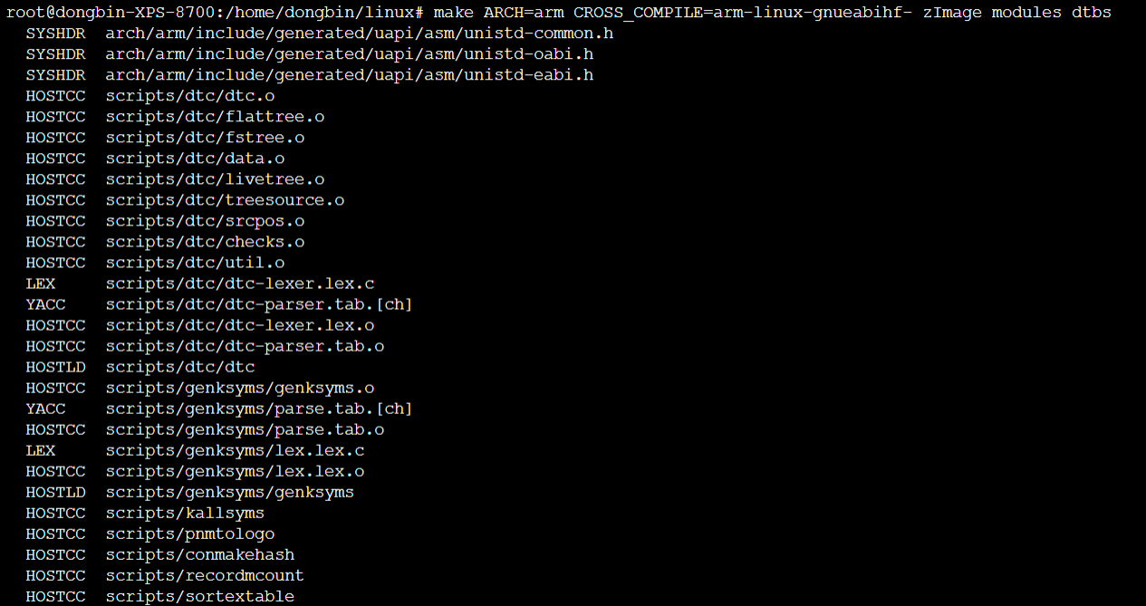 make ARCH=arm CROSS_COMPILE=arm-linux-gnueabihf- zImage modules dtbs