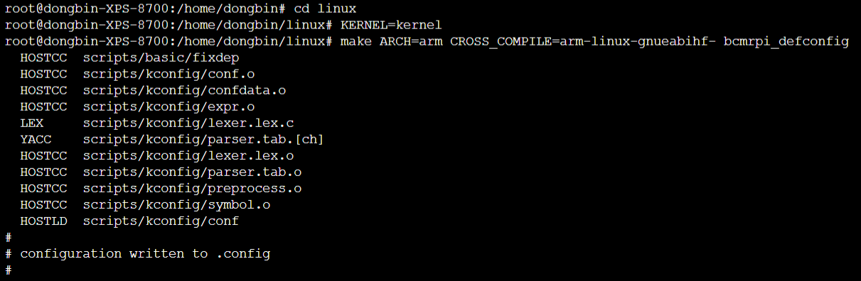 make ARCH=arm CROSS_COMPILE=arm-linux-gnueabihf- bcmrpi_defconfig