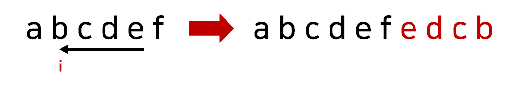 오른쪽에서 두 번째 인덱스부터 i까지의 문자열을 뒤집어 오른쪽에 붙이는 연산