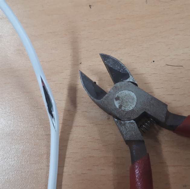 이렇게 작은 선을 자를 때는 니퍼(nipper)를 이용하면 깔끔하게 자를 수 있습니다. 저는 다음과 같이 빨간색 라인을 제거했습니다.